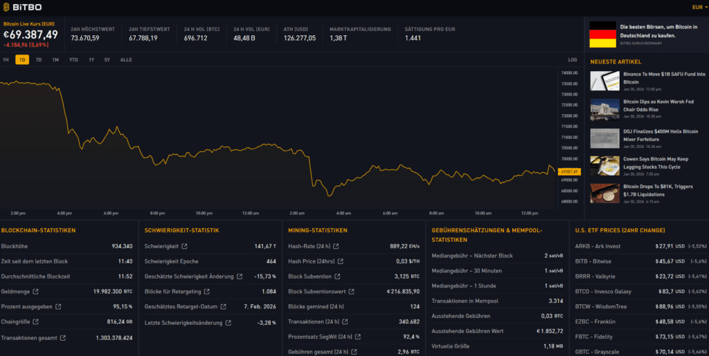 Overview page with key Bitcoin metrics.