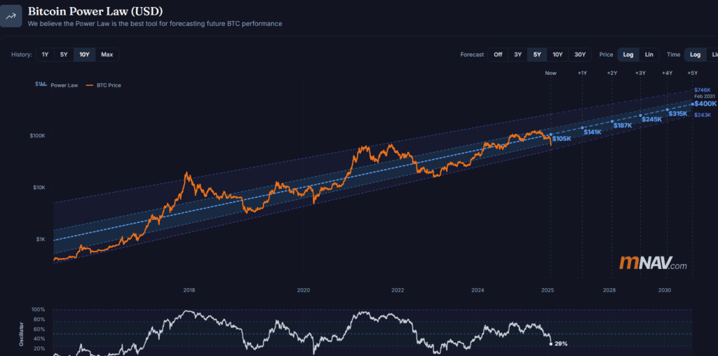 Not a guaranteed forecast: The Power Law reflects historical structure, but external shocks or economic changes may cause deviations — it’s not financial advice or a strict prediction.