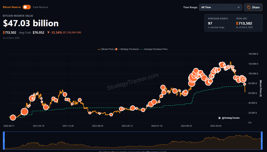 SaylorTracker.com displays visual data related to Strategy’s Bitcoin holdings and market activity. It typically includes real‑time and historical performance metrics for the company formerly known as MicroStrategy, such as the size of Bitcoin reserves, purchase events, average cost, and other treasury analytics